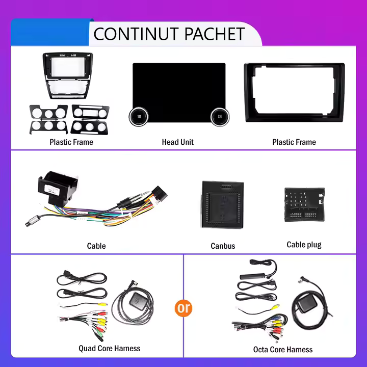 🚗 Cu rama și cablajele potrivite, acest model se poate integra pe orice autoturism, iar în cazul vehiculelor echipate cu CANBUS, sistemul preia automat comenzile și informațiile mașinii (precum senzori parcare, comenzi volan, climatizare etc.).