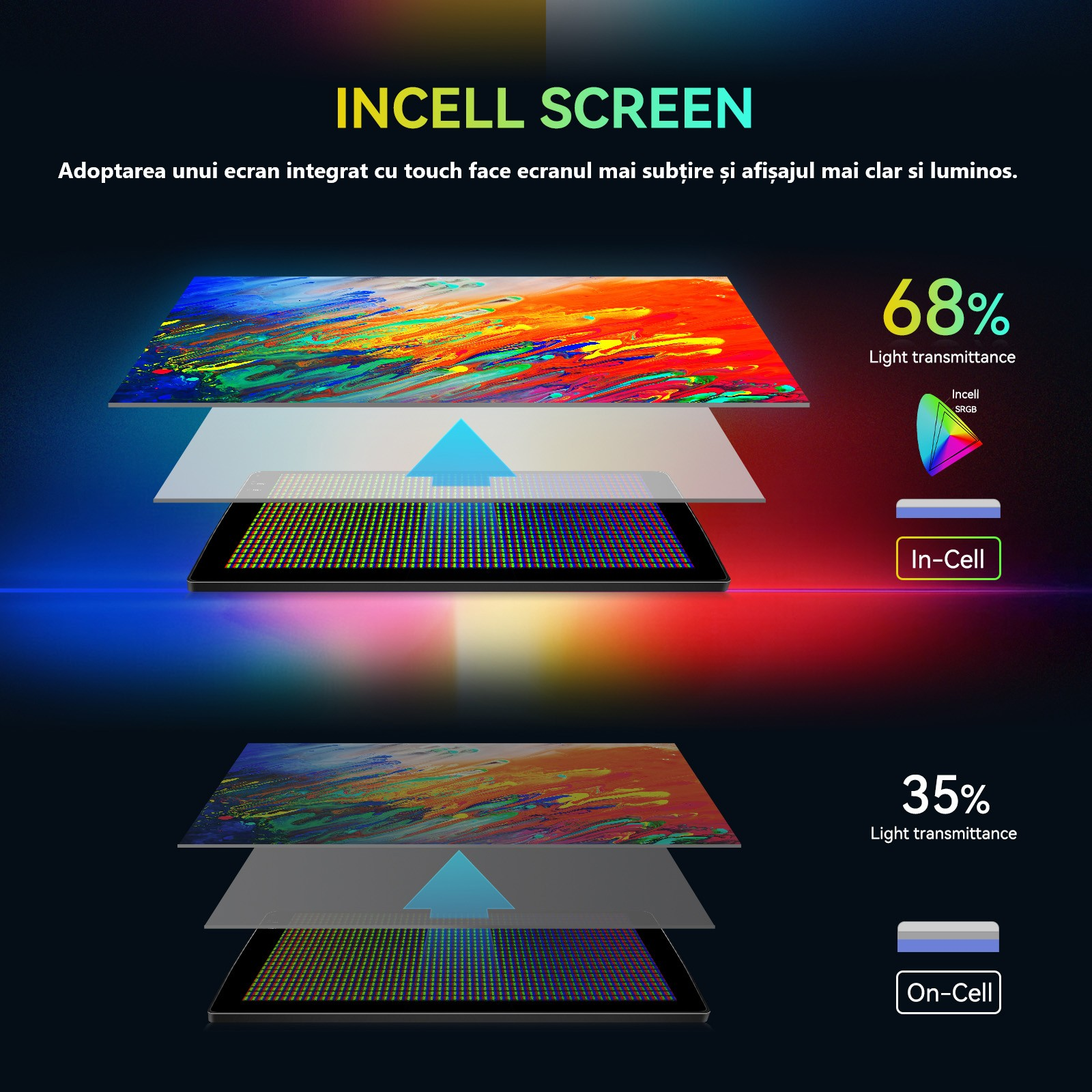 Touchscreen HD capacitiv, multitouch 5 puncte