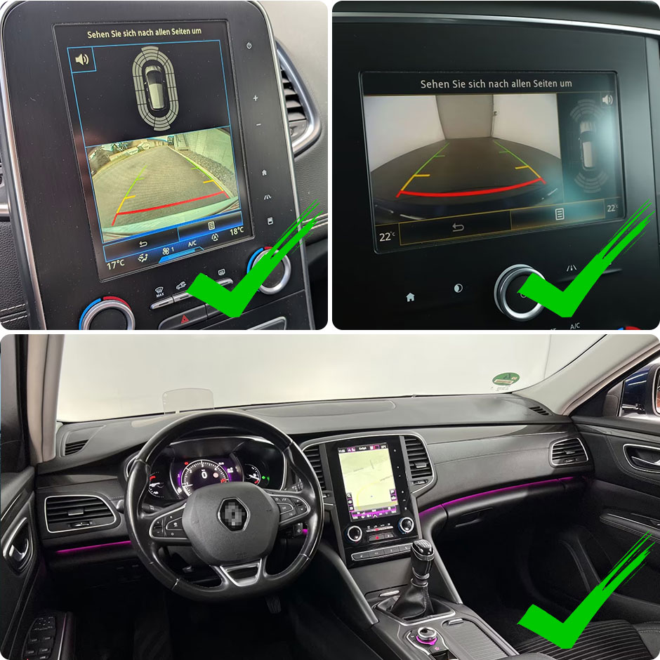 Kit dedicat pentru Renault Talisman, Scenic 4, Megane 4 (2016-2020) cu sistemul R-Link 2. Kit-ul include camera cu design OEM Style și cablul adaptor C32 Pin, asigurând instalare Plug & Play. Aduce funcția de cameră marșarier direct pe ecranul original al mașinii.