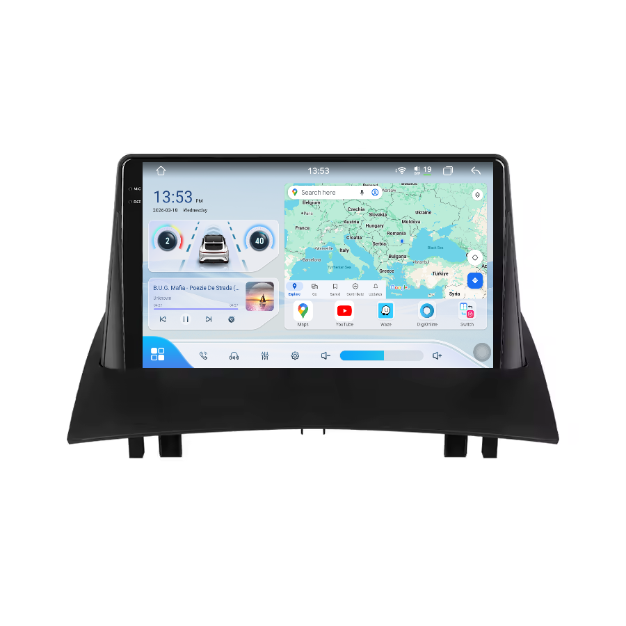 Sistemul rulează o interfață bazată pe Android 14, clar structurată, intuitivă și concepută special pentru a fi utilizată în siguranță la volan. Totul este rapid și la îndemână. Mai mult, sistemul permite customizarea aspectului grafic după bunul plac: ai acces la peste 15 teme incluse care se pot instala gratuit, pentru a potrivi ecranul cu stilul tău sau cu iluminarea bordului.