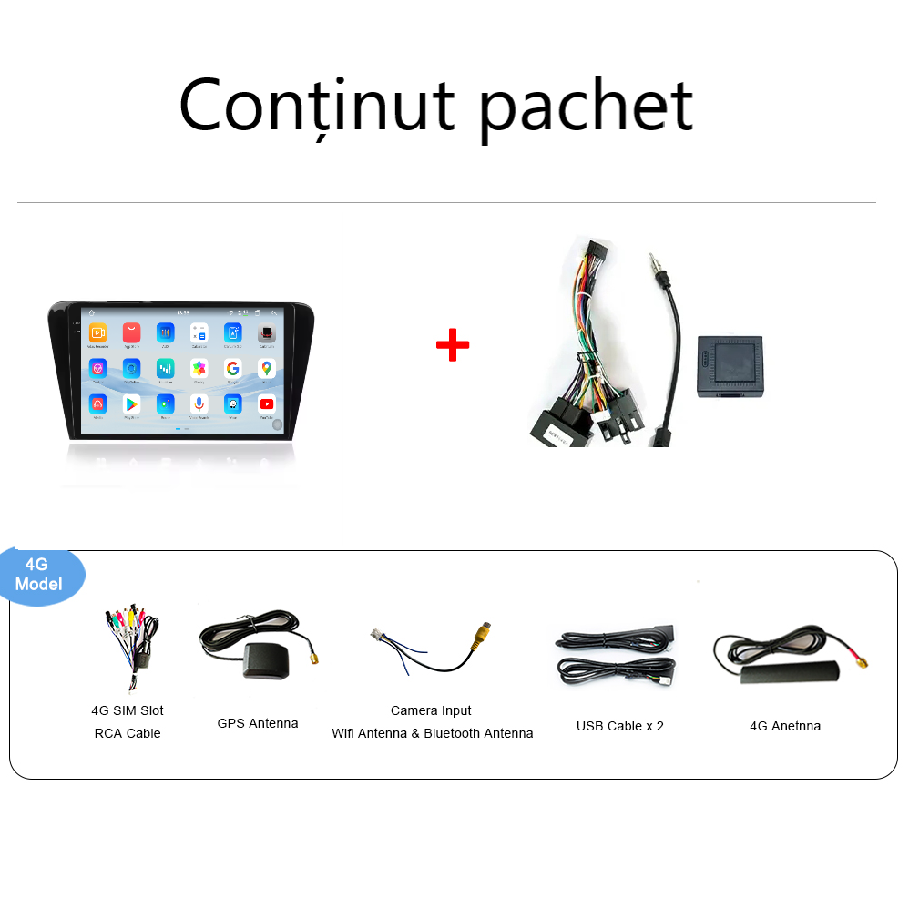*Notă: Funcționalitățile sunt disponibile strict pentru autoturismele care transmit aceste date digital prin rețeaua CAN a mașinii si pachetul contine modul canbus pus de producator.In anumite situatii (rare) conectica speciala cu canbus se cumpara separat, daca este cazul, asta se aplica doar la masinile care au dotari speciale din fabrica, cum ar fi: sistem audio cu statie, camera marsarier de fabrica sau 360, controler cu joystick, etc.