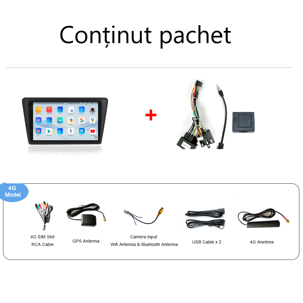 *Notă: Funcționalitățile sunt disponibile strict pentru autoturismele care transmit aceste date digital prin rețeaua CAN a mașinii si pachetul contine modul canbus pus de producator.In anumite situatii (rare) conectica speciala cu canbus se cumpara separat, daca este cazul, asta se aplica doar la masinile care au dotari speciale din fabrica, cum ar fi: sistem audio cu statie, camera marsarier de fabrica sau 360, controler cu joystick, etc.