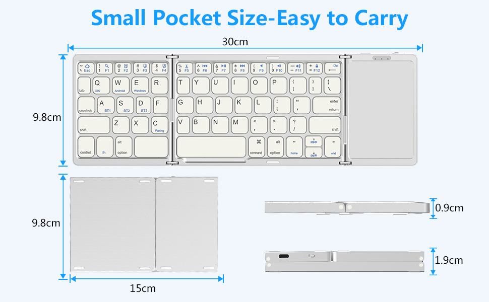 Transformă orice dispozitiv mobil într-un spațiu de lucru complet cu tastatura Bluetooth pliabilă, ultra-portabilă, dotată cu touchpad sensibil și butoane fizice de mouse. Cu un design inteligent și dimensiuni de buzunar, această tastatură este ideală pentru laptopuri, tablete, telefoane și alte gadgeturi Bluetooth.