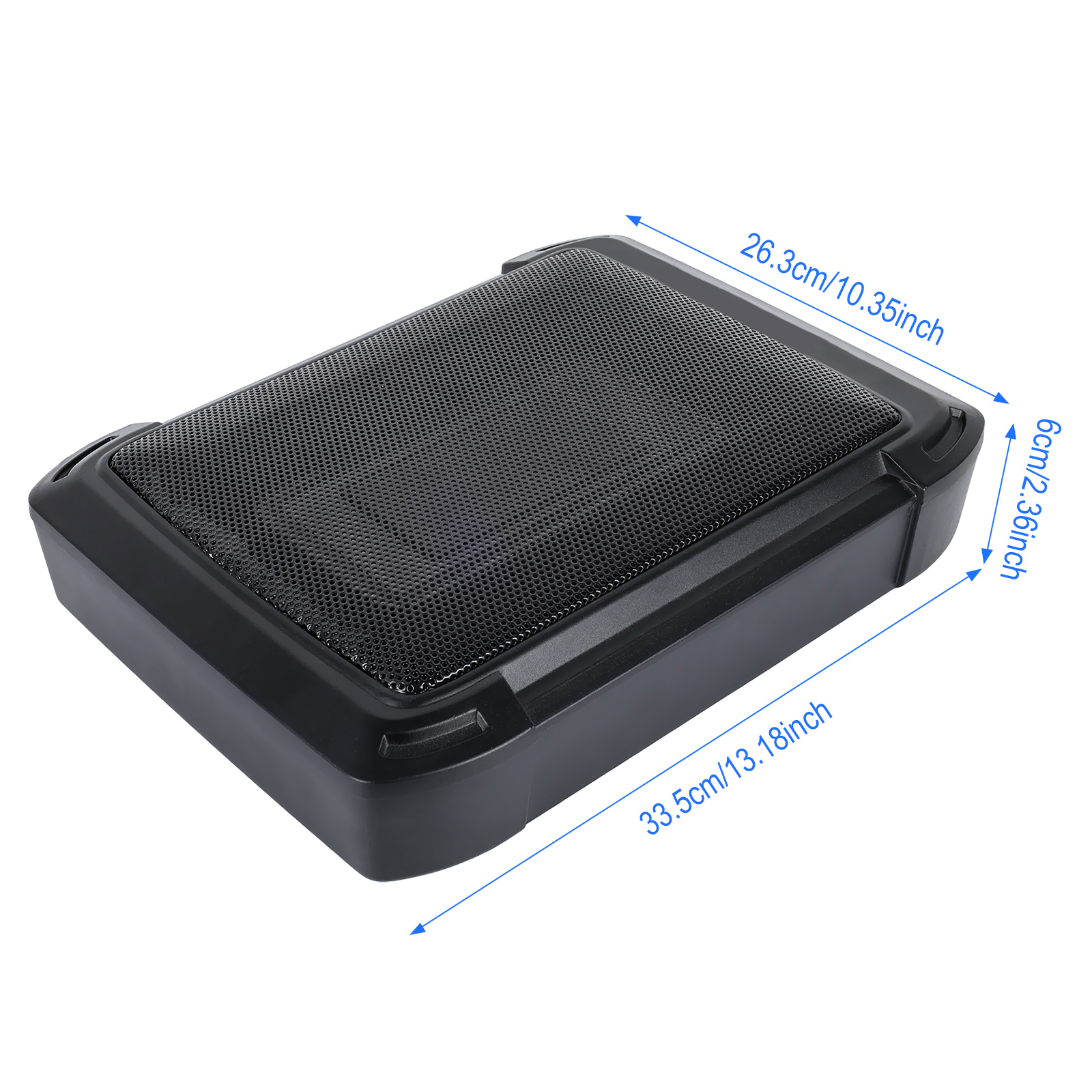 Subwoofer activ auto 10" Slim 1000W, amplificator încorporat, intrare High/Low, 33.5×26.3×6 cm