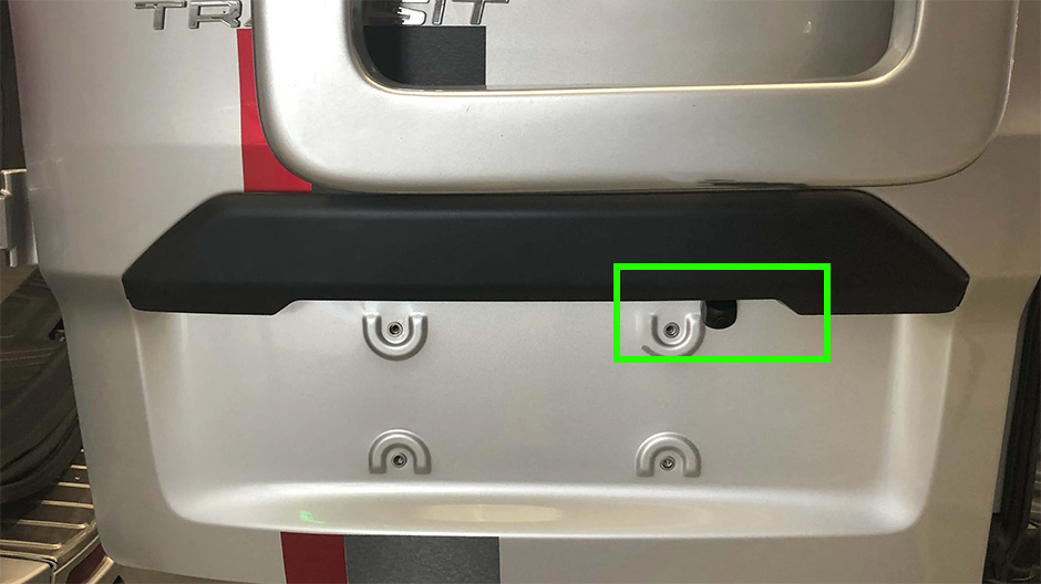 Cameră Marșarier Dedicată Ford Transit MK8 (2018-2024) cu integrare OEM în lampa de număr și conectare directă la ecranul original.
