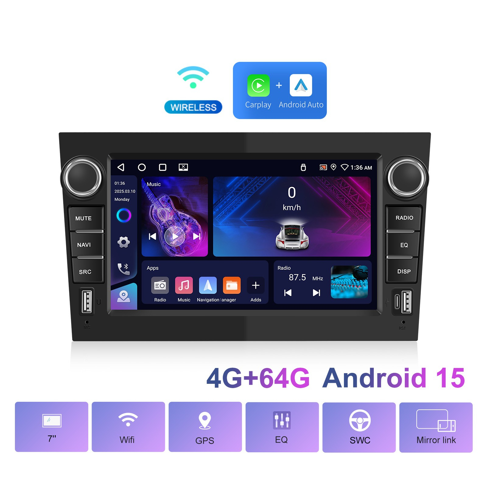 Uită de cabluri! Conectează-ți telefonul iPhone sau Android wireless și accesează aplicațiile preferate precum Waze, Google Maps, Spotify sau YouTube Music direct pe ecranul tactil. Preiei apeluri și răspunzi la mesaje prin comenzi vocale, rămânând concentrat la drum.