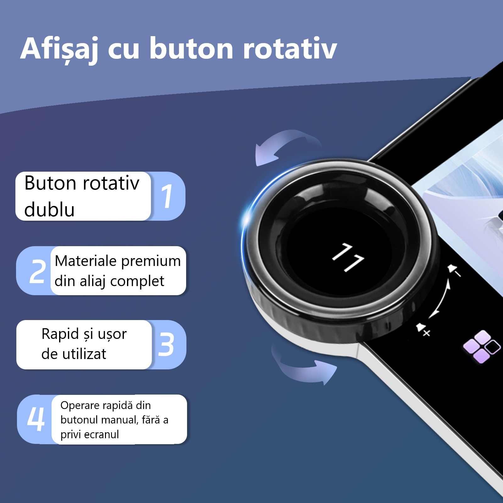 🔊 Butoanele rotative multifuncționale oferă control precis al volumului și funcțiilor media, oferind un plus de siguranță și confort în timpul condusului.